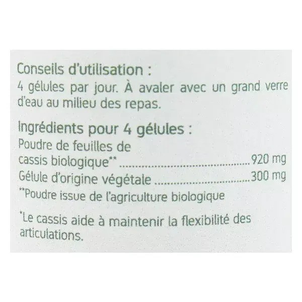 Les feuilles de cassis contiennent des flavonoïdes et des proanthocyanidines qui possèdent des propriétés anti-inflammatoires. Elles sont souvent utilisées pour soulager les douleurs articulaires et les rhumatismes.