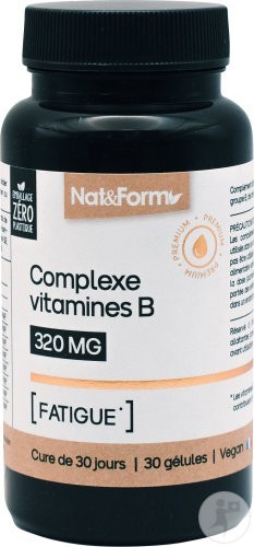 Notre Complexe vitamines B regroupe l’ensemble des 8 vitamines B: la vitamine B1 (thiamine), la vitamine B2 (riboflavine), la vitamine B3 (niacine), la vitamine B5 (acide pantothénique), la vitamine B6 (pyridoxine), la vitamine B8 (biotine), la vitamine B9 (acide folique) et la vitamine B12 (cobalamine).